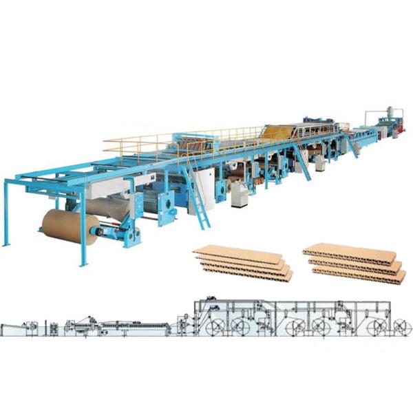 Complete corrugated paperboard production line is compose of shaftless mill roll stand, fingerless type single facer( vacuum suction type), preheater, double bridge,gluer machine, double facer machine, cut off machine, slitter scorer machine, stacker and glue making system